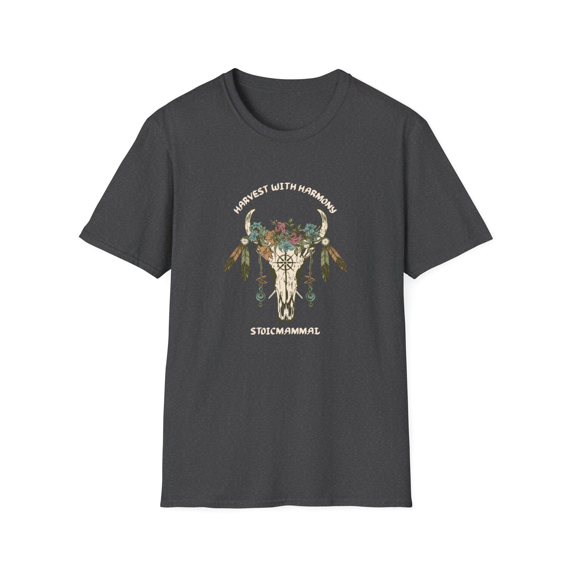 Harvest with Harmony Boho Skull Design T-Shirt