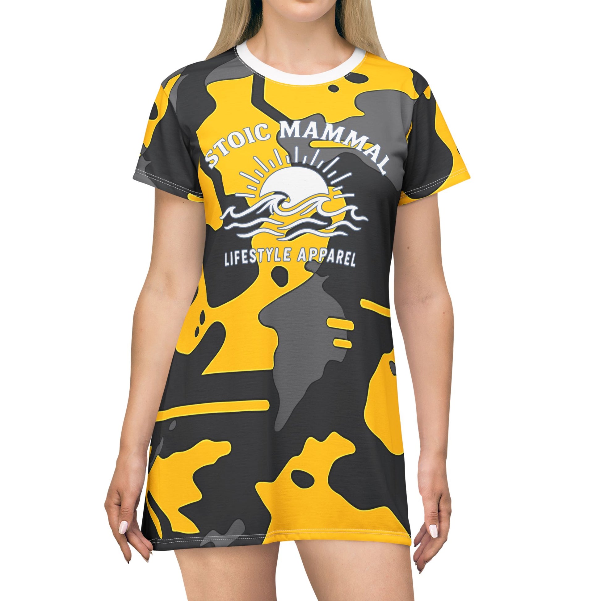 Hazard Shoreline Camo T-Shirt Dress – Stoic Mammal Coastal Survival Style for Bold Summer Moves